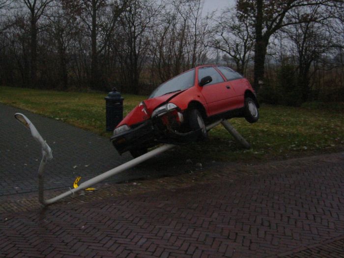 De tweede dag van het nieuwe jaar begon iets ongebruikelijk. We werden wakker met een enorme knal. Door de ijzel was de Heirweg spekglad geworden, en een passerende automobilist had dit te laat in de gaten. Zoals hij later vertelde, was het kiezen tussen een boom, de lantaarnpaal of proberen tussen de lantaarnpaal en de postbus heen te schieten. Het werd de lantaarnpaal. Gelukkig bleef het beperkt tot materiële schade.