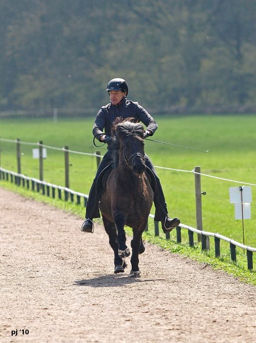 | Ästi doet het goed in Duitsland (15 oktober 2010) Recent kregen we een foto gemaild van de nieuwe eigenaresse van Ásti in Duitsland. Altijd leuk om te zien en horen dat het goed gaat met paarden die bij ons gefokt en verkocht zijn. Maresa heeft er in ieder geval veel plezier mee, en wij vinden het een leuke foto! |