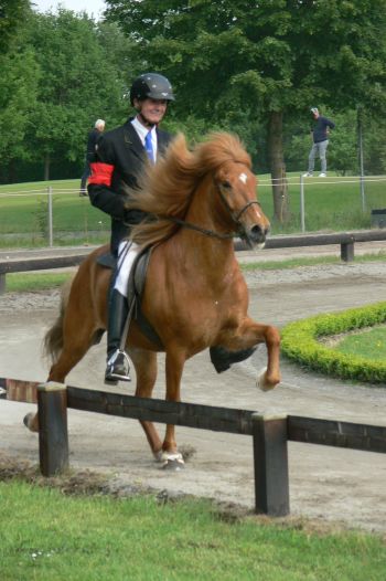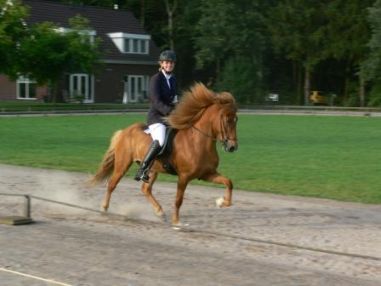 Aandachtspuntje blijft bij deze meneer dat hij graag van alles op de hoogte is, en daardoor nog wel eens zijn concentratie verliest. Helaas is dit geweldige paard ons veel te vroeg ontvallen (3 juni 2018). Een open botbreuk van een achterbeen betekende een voortijdig afscheid. Waarschijnlijk wel gebeurt bij één van de bezigheden die deze man het liefste deed, en dat was een potje ravotten met zijn maat Fáfnir op de wei.