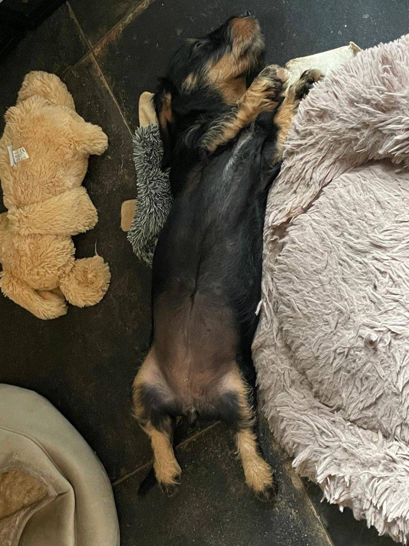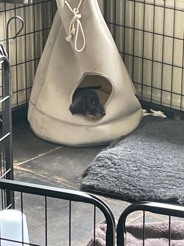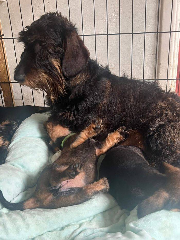 Deze ruwharige teckel is geboren in 22 mei 2025 en komt vanaf zaterdag 19 juli bij ons in Balinge wonen. Sneller dan verwacht heeft Eva een nieuwe aanwinst gevonden..